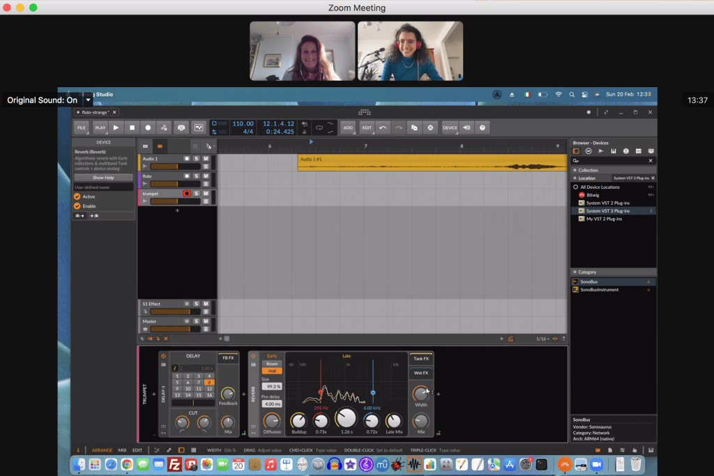 This was the second album collaboration for which FLO produced compositions made entirely telematically (the first was the Oceans Reimagined, published by Pueblo Nuevo net label based in Chile, for which produced a telematic remix), and it quickly became our favourite way of producing music 🙂 Sure, it takes time to set up the tech for the remote recording sessions, to organize everyone’s schedule across different time zones (from Brazil to Australia, these are some very busy ladies indeed!) and to prep the recordings for the album release (40 hours give or take!) but it was totally worth it!!!