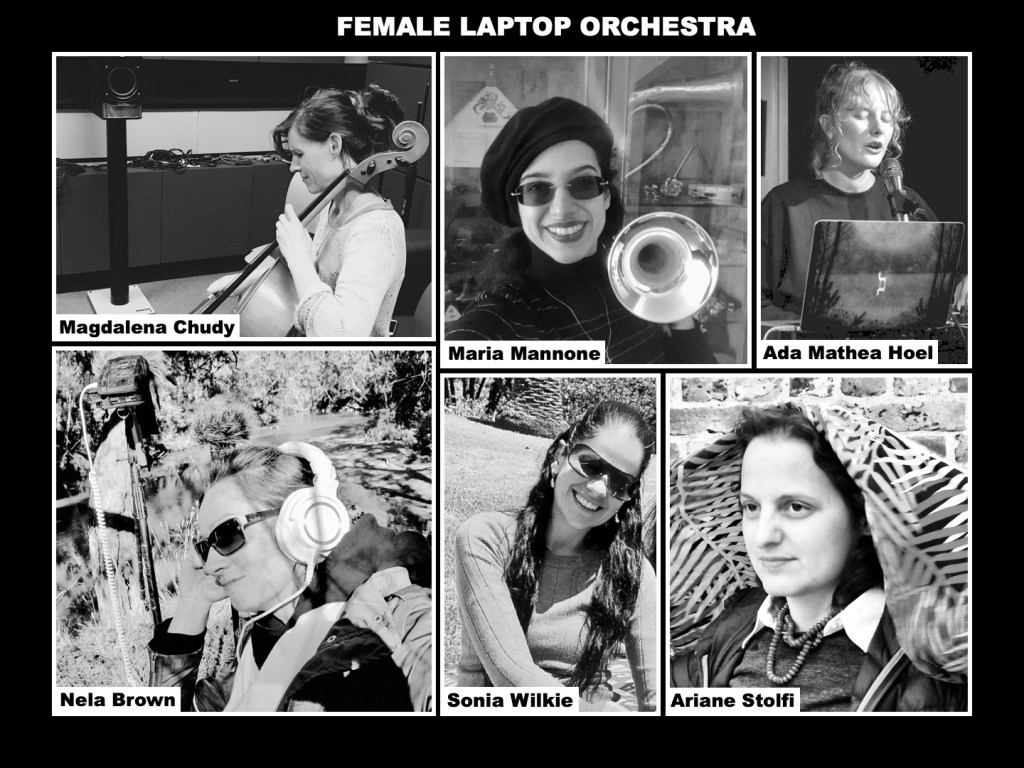 Between September 2021 and September 2022, FLO members: Nela Brown (London), Maria Mannone (Palermo), Magdalena Chudy (Warsaw), Ariane Stolfi (Arraial d’Ajuda), Sonia Wilkie (Melbourne) and Ada Mathea Hoel (Oslo), organized a number of telematic music improvisation sessions, during which we connected over the network using the SonoBus platform (from our respective locations) and recorded 4 compositions for the EP. The individual stems from these remotely composed tracks then got edited, mixed and mastered by Nela in London before being sent to Tsuku Boshi Records based in Paris.