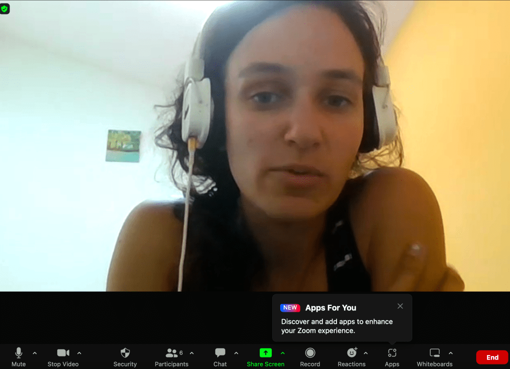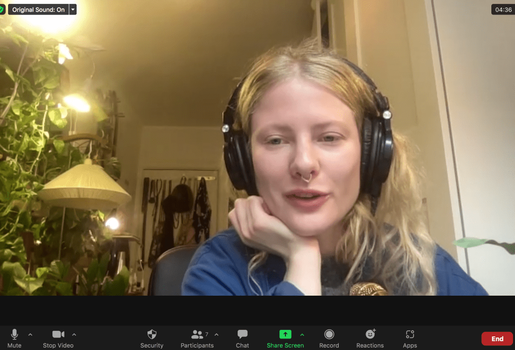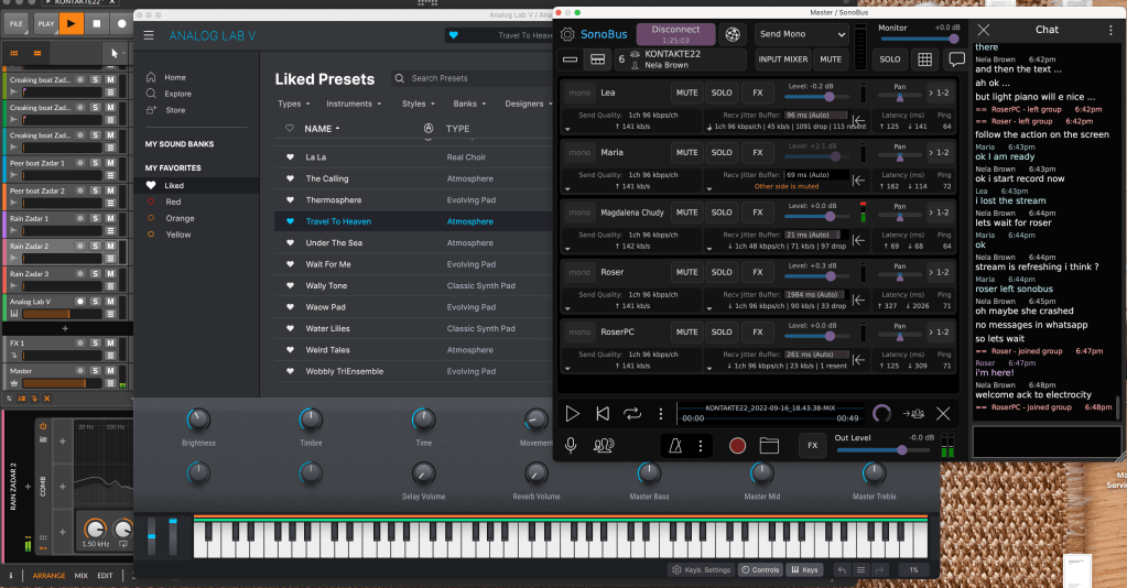 During the rehearsals (all of which happened remotely on SonoBus), Léa got inspired by the dance videos and proposed we connect them to the theme of mental health, with using various snippets of sound and voice narrative underpinning the theme. This worked really well and, at the end of the concert, when Maria and Léa joined us via Zoom to explain what they were using as part of their set-up, Léa also explained how she worked in the narrative about mental health into the dance videos narrative, whilst playing the video Fumi made explaining the choreography process. After the concert, some of the audience members came to ask further questions about the set-up, so we spent some time explaining everything in more detail to try to encourage the interested folks to try the “telematic thingy’ themselves!