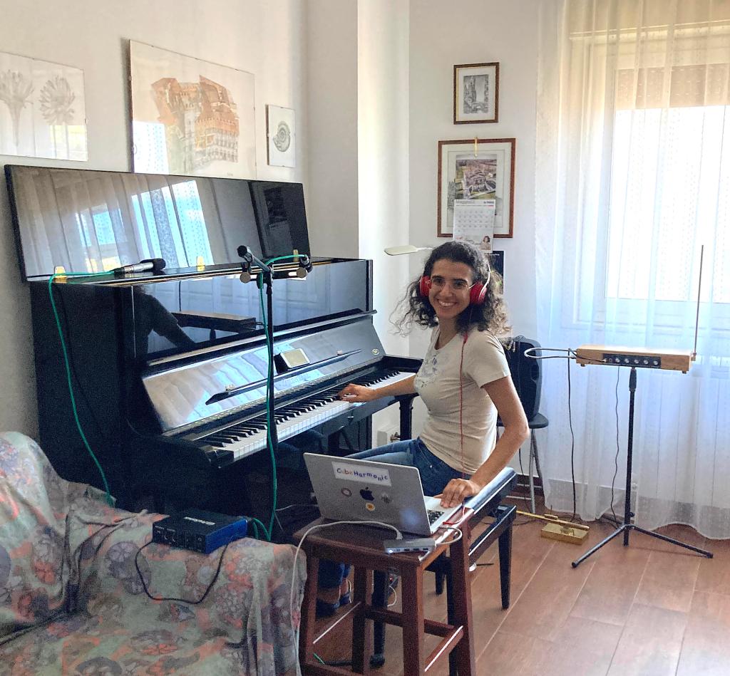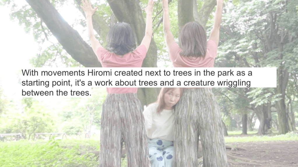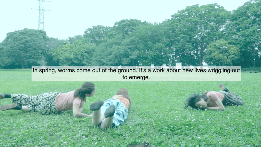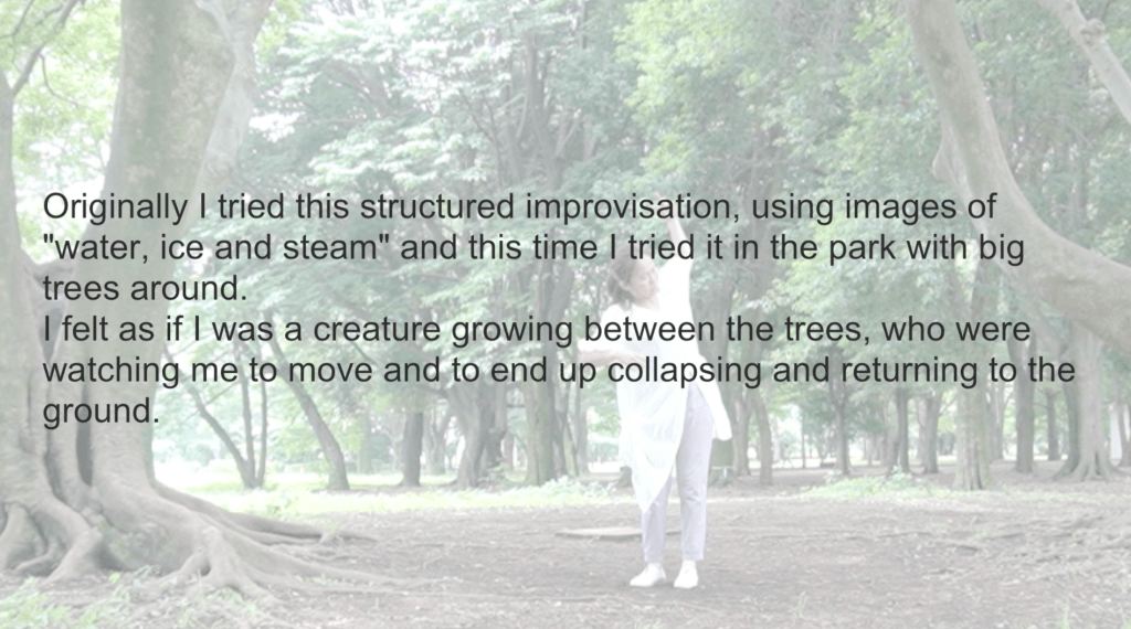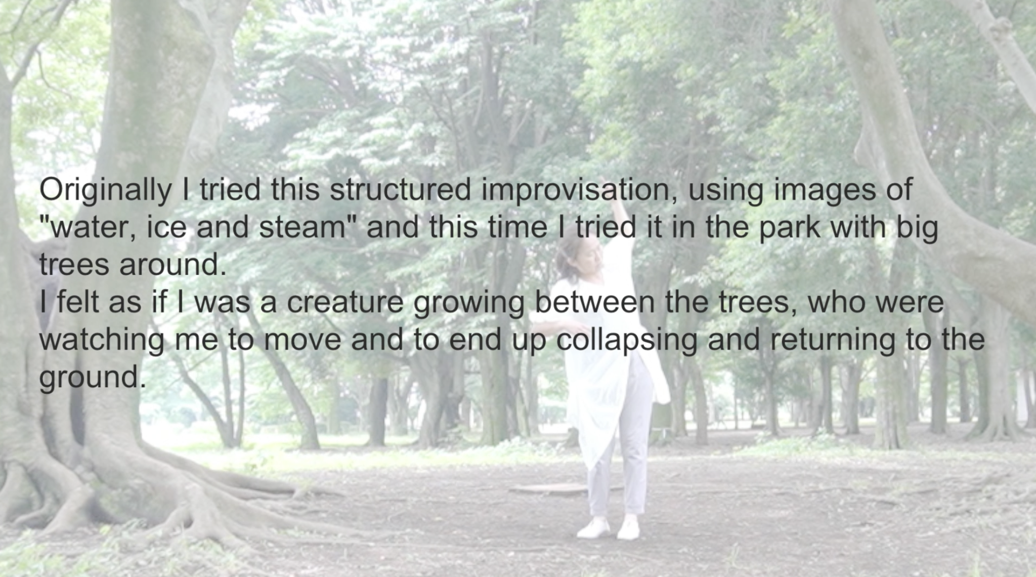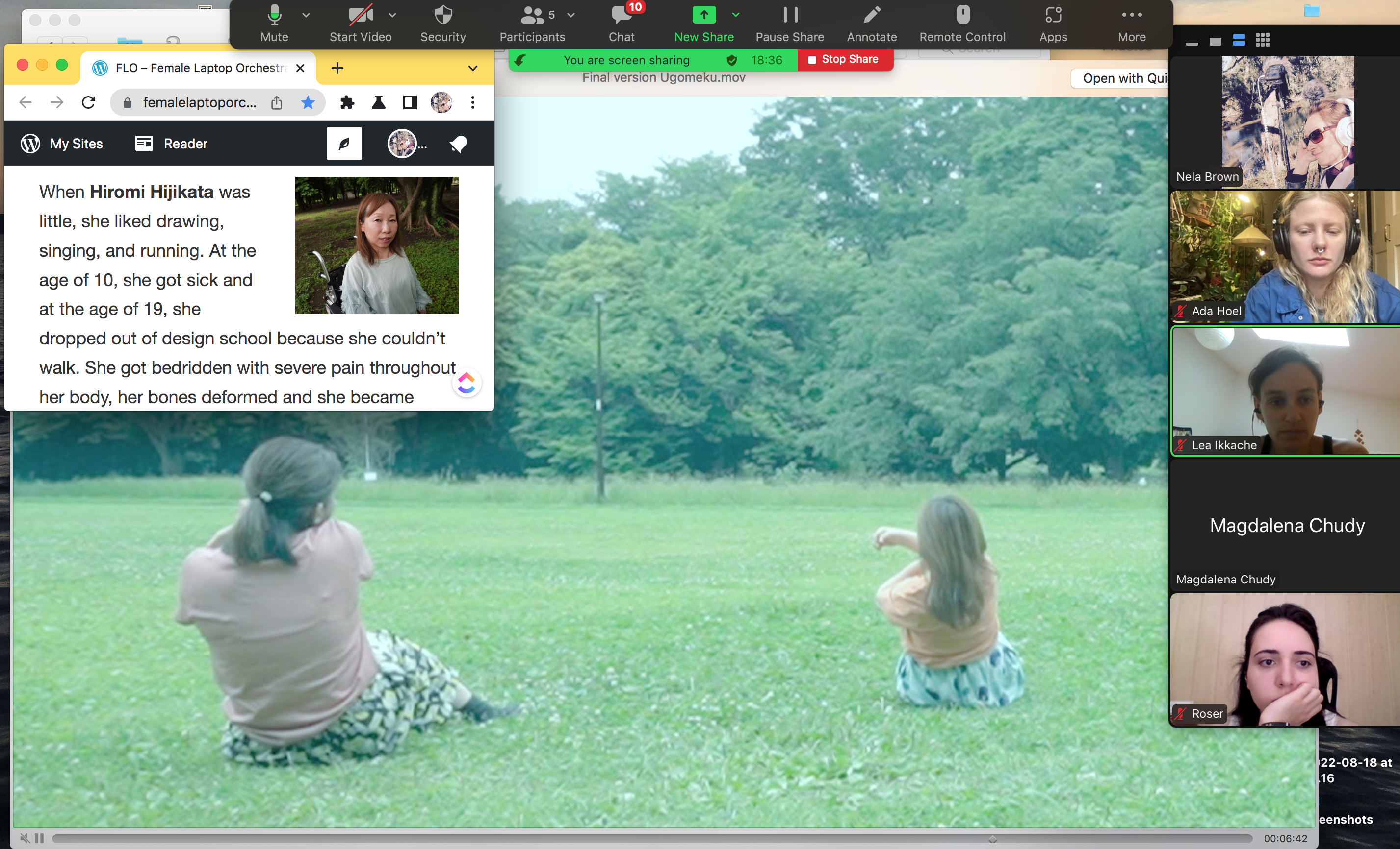 Usually, at the end of each ‘co-located/distributed’ FLO performance, we bring in the remote performers via Zoom (or similar software), to say hi and explain to the audience what was going on (ie. why there was a sound of a piano, trumpet and voice but the audience could not see where this was coming from!). Fumi, Aki and Hiromi unfortunately couldn’t join us for this due to time difference between Tokyo and Berlin, but they were there ‘in spirit’, as Fumi made a short video narrated in Japanese with English subtitles, to explain how the process of creating each of the videos worked.