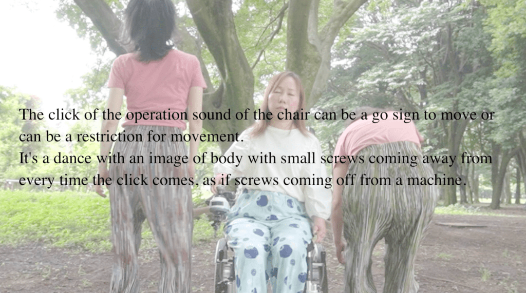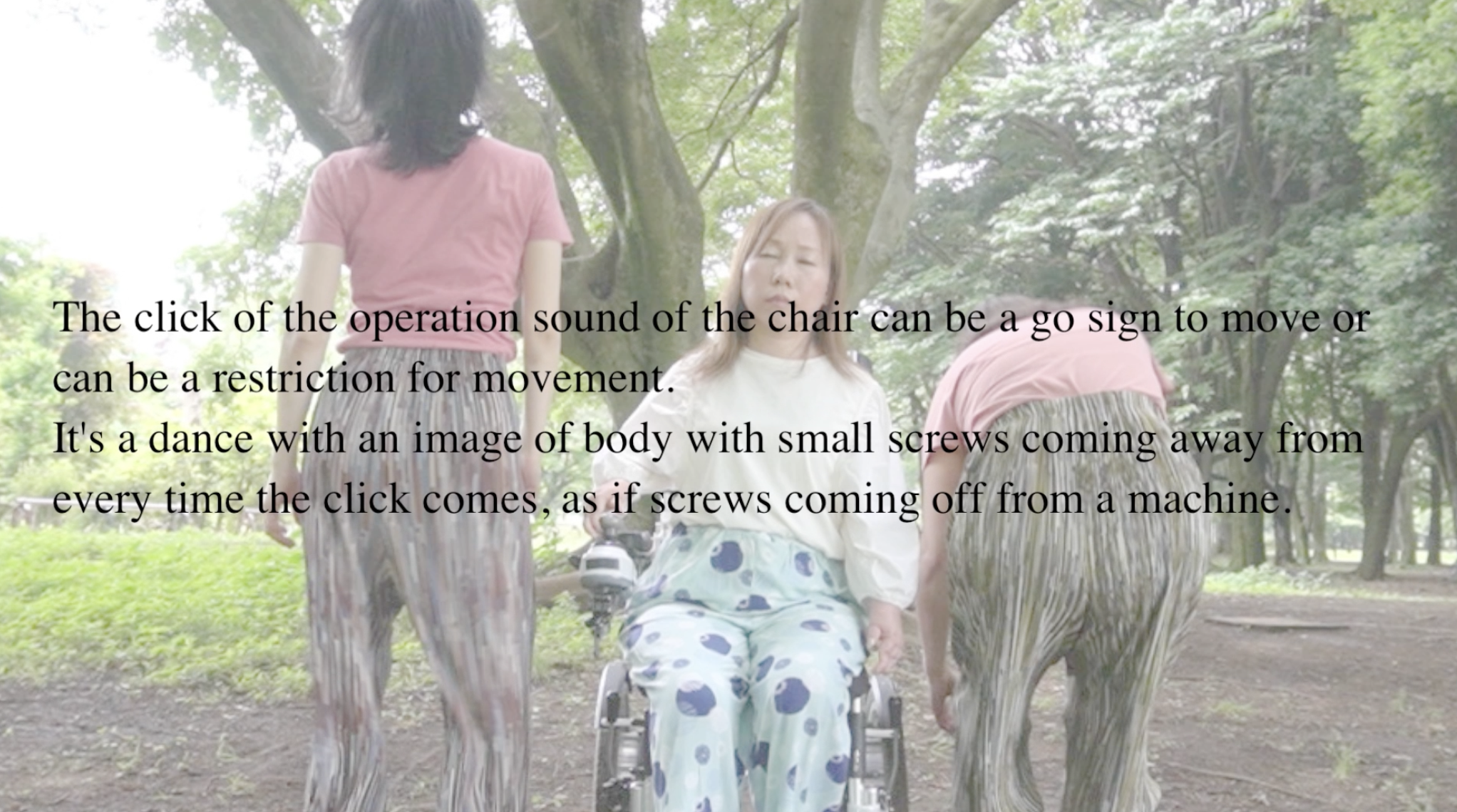 As a follow-up to our collaboration with the Japanese dance artists Fumi Tomioka and Aki Kawashita in 2019, exploring telematic music-making inspired by movement and afforded by the network (which resulted in 2 performances taking place in Melbourne and Zagreb), we reached out to Fumi and Aki to see if they could create some work for our KONTAKTE’22 performance. Since our last collaboration, Fumi and Aki started working with a disabled dancer Hiromi Hijikata and creating performance improvisations work led by Aki, which was inspired by the ‘spaces around them and within them as they moved in the park’. As we were due to perform outdoors (at the Akademie der Künste internal courtyard), which had trees and bushes, this seemed like a perfect match.