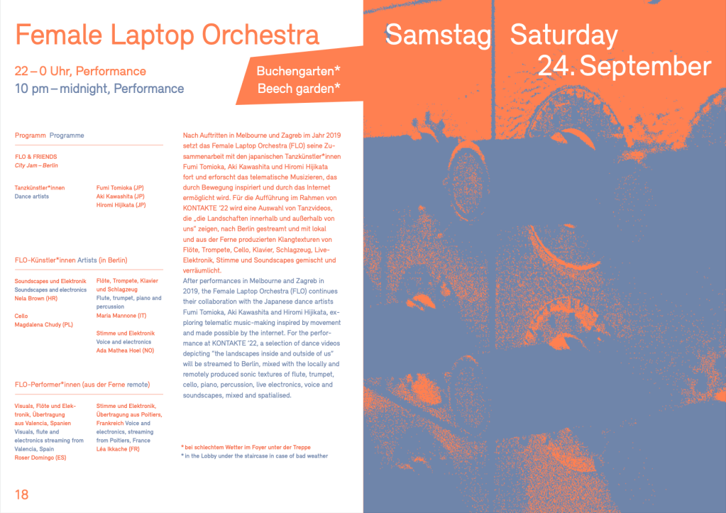 The Academy of the Arts Berlin (Akademie der Künste) is one of the oldest European cultural institutes, founded in 1696. It consists of six sections: Fine Arts, Architecture, Music, Literature, Performing Arts, Film and Media Art, and over the years, it served as a venue for exhibitions, events and performances and an important hub for artists (and lovers of art) to meet and discuss art and cultural policies. A few years back, the lovely folks from the Studio for Electroacoustic Music (which has been part of the Akademie der Künste since the 80’s and is steeped in electroacoustic music history!), started an amazing Festival for Electroacoustic Music and Sound Art (Festival für Elektroakustische Musik und Klangkunst) called KONTAKTE and in 2021, when Malte Giesen became a director of the studio, he invited FLO to take part in the fourth edition of the festival due to happen in 2022. Needless to say, at the point of getting the invite the pandemic was still very much happening, but everyones’ hope was that this would quieten down by the time the festival was due to happen (September), and so it did!