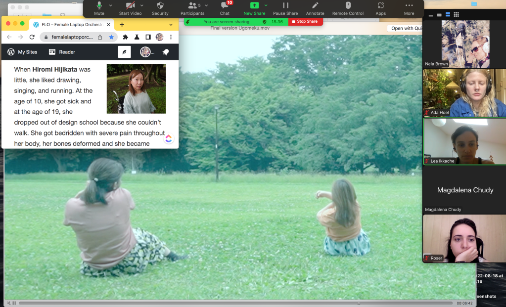 As in the ‘pre-pandemic’ times, some of the FLO peeps were able to travel to Berlin to do tech set-up and performance in front of the audience (Nela flew in from Zadar, Ada from Oslo, Roser from Valencia whilst Magda took the train from Warsaw), whilst some joined remotely (Maria from Palermo, Italy and Léa from Poitiers, France).