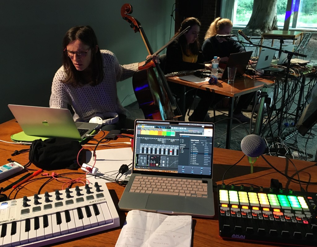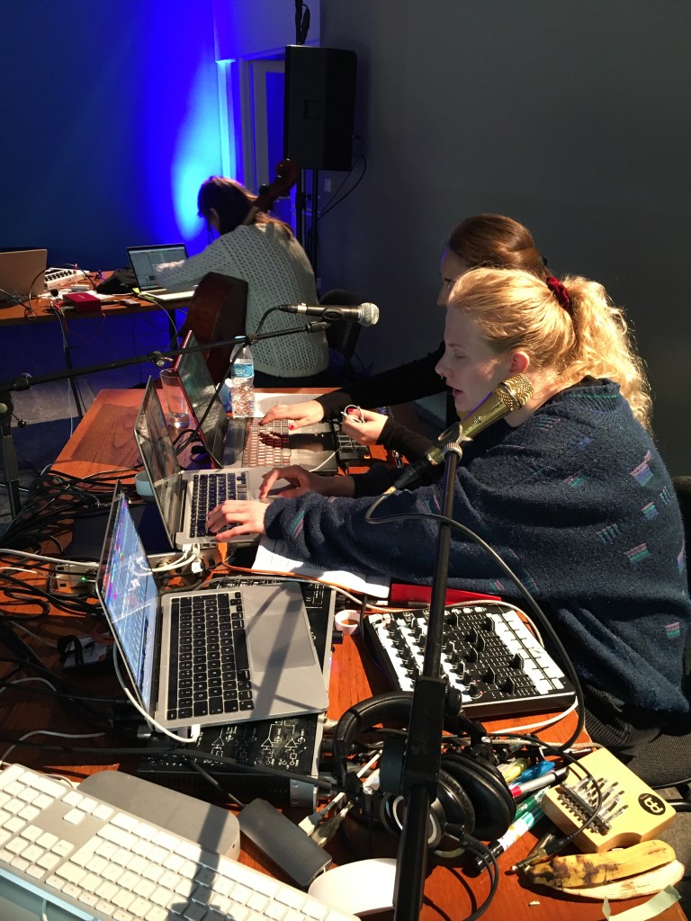During the concert, we projected 4 dance videos Aki, Fumi and Hiromi created depicting “the landscapes inside and outside of us”, whilst also streaming them to Maria and Léa via Discord (yep, another good use of the already fabulous platform!). Each video was accompanied (in real-time) by a mix of locally and remotely produced sonic textures. This mix was then expertly spatialised in 8-channels by Ada (who had so many computers, screens, controllers and cables around her that it looked like she was operating a spaceship!). On top of this, the audio mix of local and remote streams was piped from SonoBus into Touch Designer, so that Roser (who can do just about anything!) could use her midi controller to further deconstruct the visuals in real-time (having pre-programmed some ‘audio-to-visual features’ ahead of the concert). Yep, that all happened!!! And none of the gear broke down! Phew!!! And Yay!!!