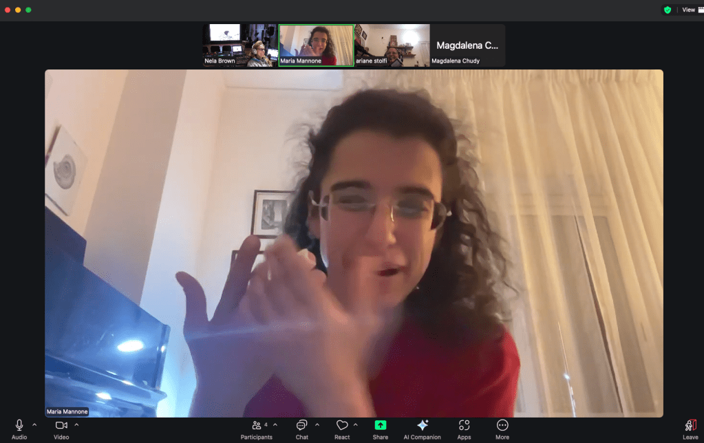 Magda and Maria were supposed to be joined by Léa Ikkache (who was busy with her start-up recently and could not play with us) and Alayna Hughes (musician, engineer, producer and creative technologist that Nela met when they were both participating in a panel talk at the Atenea conference in Valencia a few years back, and, who finally had a bit of time to join 🙂 Unfortunately, Léa was in the middle of moving to another city, and her internet access was kind of in flux, so she decided to join us at the next one.