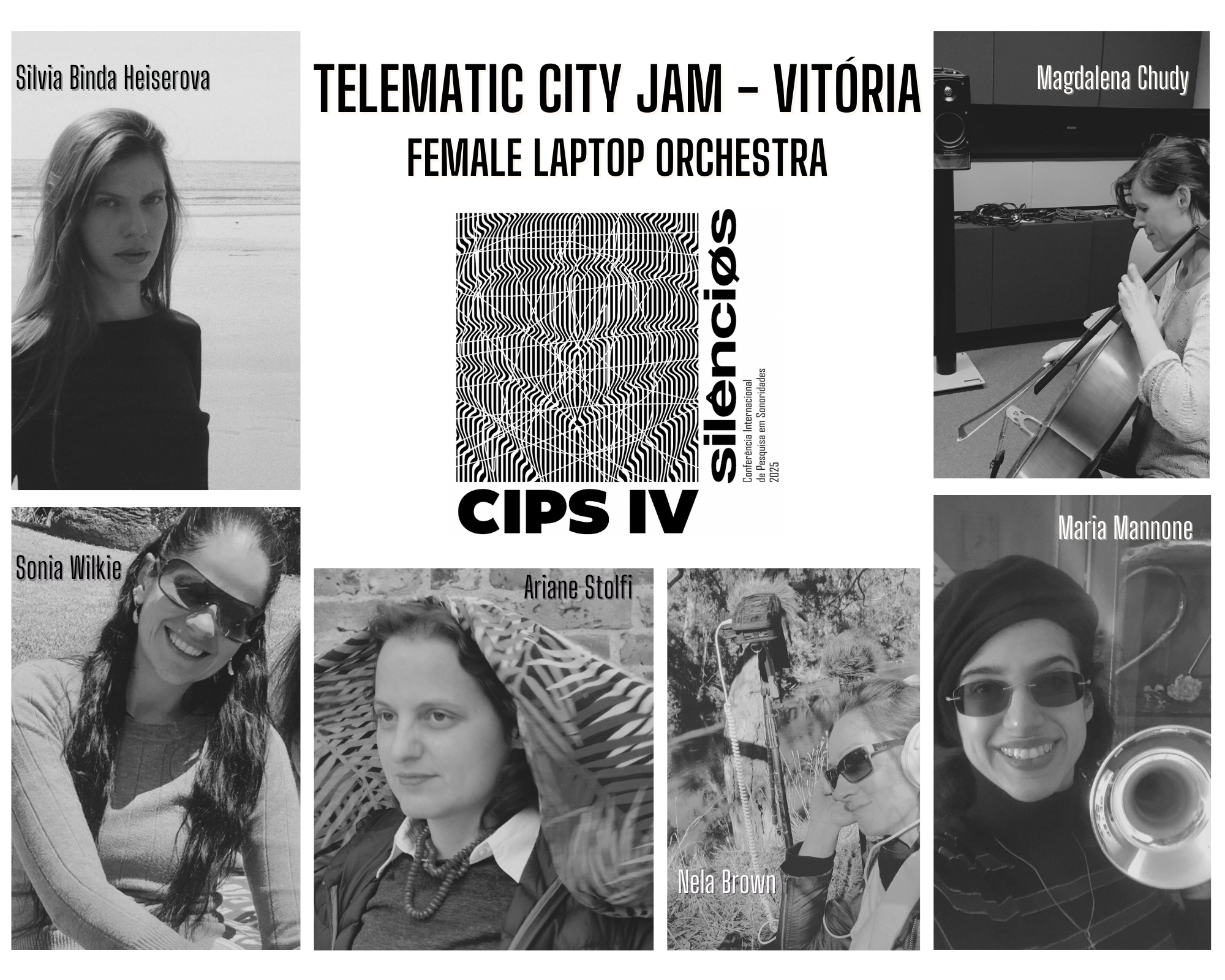 FLO: Maria Mannone (IT), Nela Brown (HR), Magdalena Chudy (PL), Ariane Stolfi (BR), Sonia Wilkie (AU), Silvia Binda Heiserova (SK). A live broadcast of the Telematic City Jam – Glasgow on 87.9 FM as part of the Radiophrenia 2025 festival. For listeners outside of Glasgow, a live webstream is available at radiophrenia.scot/listen/